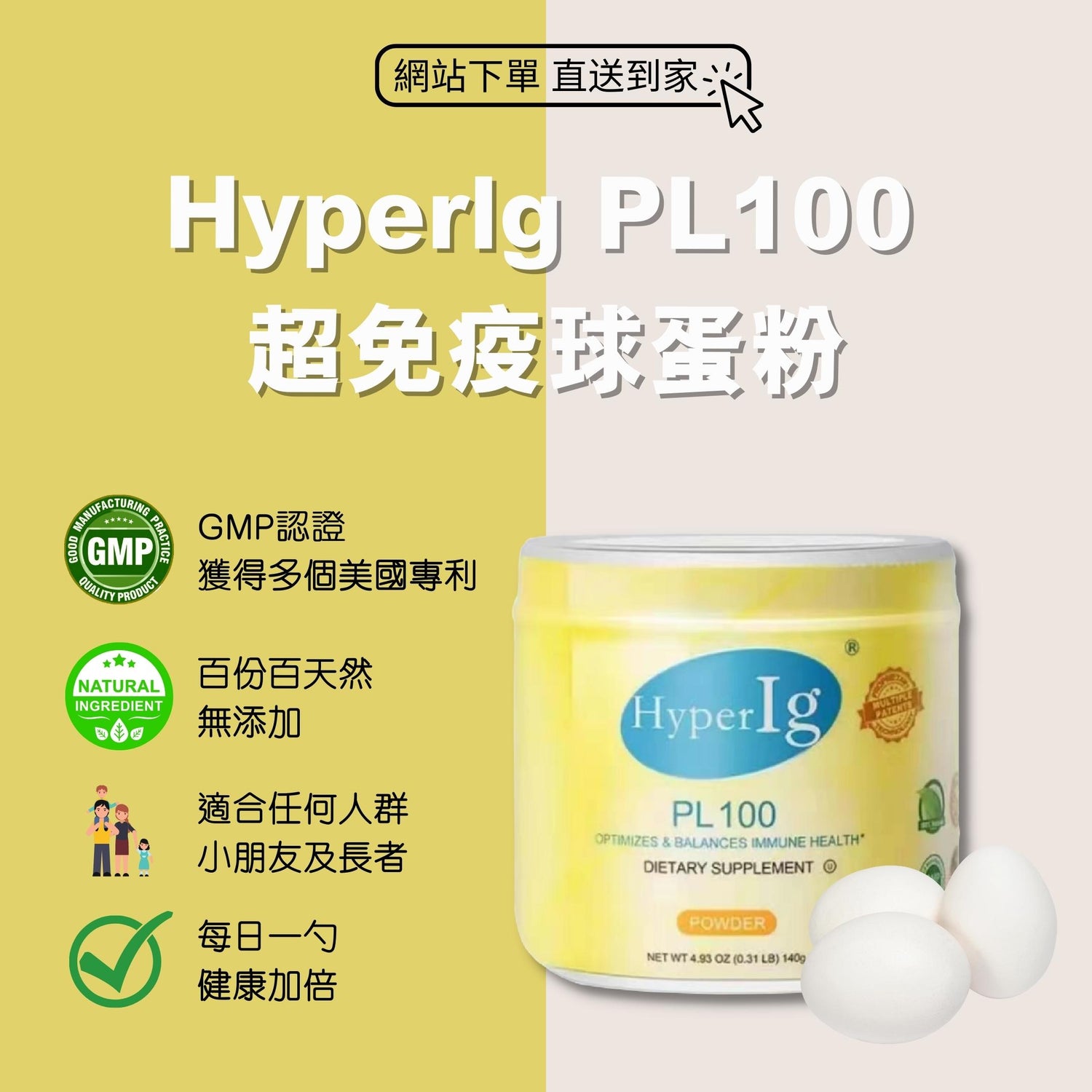 HyperIg® PL100 是由高效免疫雞蛋所製造而成的全天然蛋粉。高效免疫雞蛋是由攜帶特殊免疫因子的母雞所生產,特殊的免疫因子對於人類與動物健康均有正面的影響。